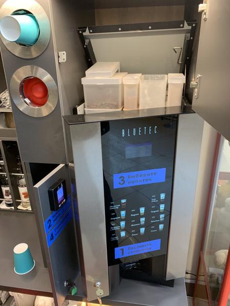 Нет необходимости ждать официанта, чтобы заказать кофе и ждать его приготовления. Здесь все очень просто. Есть стойка с кофе-машиной. Там все необходимое - стаканчики, ингредиенты. Вы сами можете приготовить свой кофе.