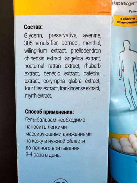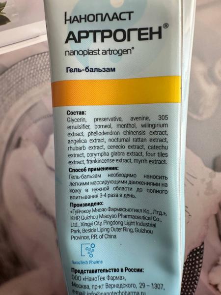 Отзыв: У меня шейный остеохондроз, поэтому я перепробовала множество различных средств, для облегчения состояния. Очень понравился гель-бальзам Нанопласт Артроген, решила поделиться и с вами). Купила на маркетплейсе, стоимость приятная. Гель-бальзам в мягкой пластиковой тубе, упакованной в картонную коробочку. Имеет контроль первого вскрытия, в виде защитной фольги. У Нанопласт Артроген натуральный растительный состав, плюс он не содержит НПВС. У него большой спектр показаний к применению. Вся необходи… Читать далее
