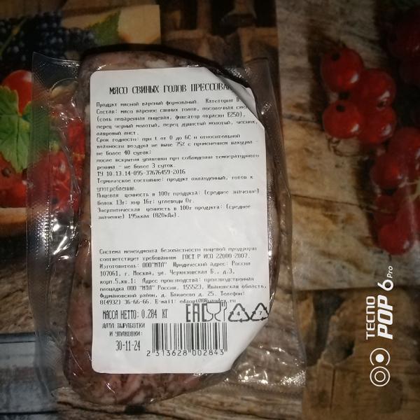 Среди прочих мясных продуктов я нашла такую мясную новинку. Этой новинкой оказалось мясо свиных голов от компании ООО "МТЛ". Данная компания именует себя производственной площадкой, а находится она в Ивановской области.
