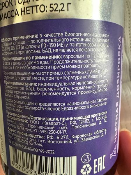 Отзыв: Случилась со мной одна неприятная вещь под названием бессонница. Этому наверняка препятствовал сильнейший стресс, который я пережила некоторое время назад. Организм, видимо, дал сбой и никак не удавалось снова найти гармонию с собой. Для восстановления баланса приобрела ночной комплекс витаминов для сна и против стресса Триптофан (Витамир про) Витамины в виде капсул стандартного размера. Находятся они в пластиковой баночке темного цвета. На этикетке имеется информация о продукте. В том числе с… Читать далее