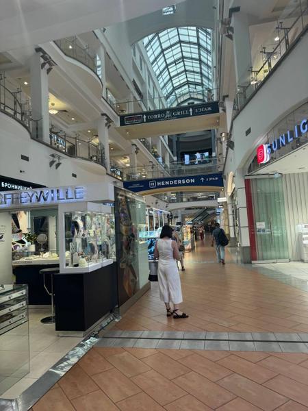 Достоинства: Разнообразие магазинов, наличие кинотеатра и фитнес-клуба, хорошо организованное пространство.
