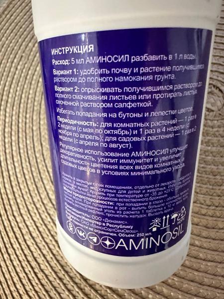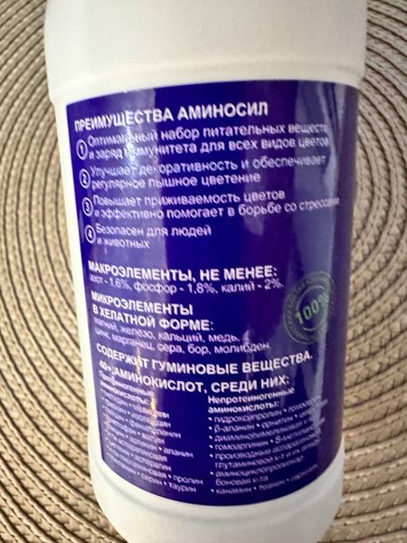 Отзыв: Всем цветоводам привет! Я решила поделится своей находкой. Недавно заметила, что мои цветы стали чахнуть, решила их подкормить. Купила, по рекомендации мамы удобрение - концентрат для комнатных цветов Аминосил. Она фанатка цветов и разбирается в уходе за ними. Заказала на Вайлдбиризе это удобрение, объем 250 мл. На коробке вся информация. Удобрение помогает цветочкам приобрести яркость, улучшает внешний вид, делает их здоровыми. Состав хороший макро и микроэлементы, гуминовые вещества, аминокисл… Читать далее