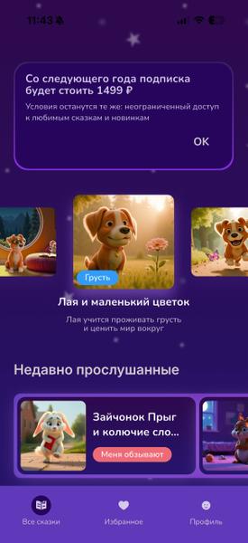Отзыв: Продолжаю тестировать приложение, о котором писала в своем прошлом отзыве. На этот раз оформила подписку. Цена кстати снизилась. До этого стоила 299 рублей, теперь 149, поэтому решила тестово на месяц взять . Решила все-таки рискнуть. Вполне себе неплохая цена - книжка на озоне про зверей примерно так и стоят. Мы столько их брали на почитать, что я, кажется, весь ассортимент выучила, так что выбор стоял между новой книжкой и десятком новых сказок. Тут далеко ходить не надо как на пвз поэтому… Читать далее