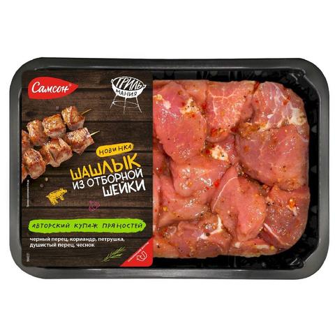 Всегда нравился шашлык от бренда Самсон. В этот раз решили с семьей попробовать новинку - шашлык из отборной шейки. Кусочки среднего размера, можно готовить и так, можно нарезать на более мелкие части. Шашлык тщательно промаринован с паприкой, чесноком, кориандром. Даже есть перец чили для легкой пикантности.