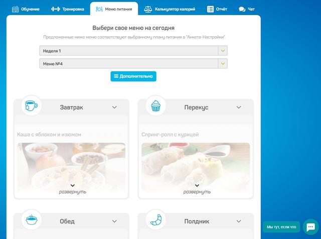 Сразу в личном кабинете есть контроль калорий!
