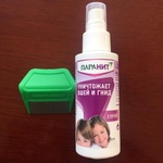 Паранит спрей- это средство, для профилактики вшей. Наносится простым опрыскиванием из флакона (как обычный лак), запаха не имеет и не склеивает волосы. Из важных моментов, это то, что наносить нужно на чистую сухую голову. По деньгам- 600 рублей, но оно того стоит.
