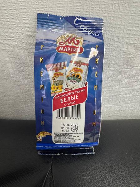 Отзыв: Семечки от Мартина с морской солью были куплены за 70 рублей. Раньше данные семечки очень нравились, но сейчас, открыв пачку, немного разочаровалась. Семечки крупные, хорошо обжаренные, по сравнению с другими семечками не сильно соленые( не бежишь после них выпивать графин воды))). Но вкус очень подвёл- очень отдают горечью, по сроку годности ещё около года.