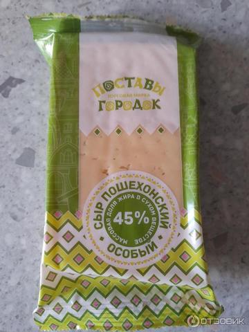 Не смотря на скудный выбор, сыр Пошехонский особый от Поставы Городок оказался весьма не плох. Довольно мягкий, не резиновый, как это бывает. Вкус... Вот как бы лучше его описать? Прямо кисло-сладкий, отдает сливками. В общем, неожиданно вкусный, я такого еще не пробовала, мне самой очень понравился. Не смотря на то, что я в таких продуктах себя ограничиваю, так как сыр - продукт калорийный, сама его сегодня утром ела с удовольствием, да и сыну понравилось.
