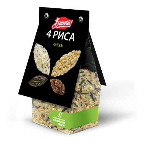 Состоит данная смесь из 4 подвидов риса-больше всего пропаренного белого, бурого, красного и дикого. Очень чистый, зерна целые, не поврежденные, мусора среди них не было.