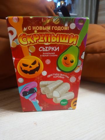 Отзыв: В новый год мы купили новые творожные сырки "скрепыши". Ребенок у нас неохотно ест молочные продукты, а вот сырки с удовольсивем. Сначало они нам показались подозрительными, думали что не вкусные. И вот открыв упаковку там было ровно 6 штук как и указано на упаковке, и один скрепыш (сюрприз). На вид они маленькие, ну так они и для детей, в белом шоколаде. На запах приятные и на вкус тоже. На зубах не скрепело ничего, шоколад не казался пластелином. Ребёнок и взрослые съели с удовольствием. Ника… Читать далее