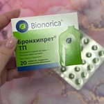 Умудрилась простыть, так еще и кашель начал мучить не по-детски. Попросила мужа купить в аптеке что-то от кашля и там ему посоветовали таблетки Бронхипрет. Прочитала быстренько инструкцию и начала принимать как там написано - 1 таблетка 3 раза в день. Эффект появился уже на второй день: кашель стал продуктивным, мокрота начала хорошо отходить. А после недели приема этих таблеток я наконец-то почувствовала заветное облегчение. Кашля почти не осталось, мокроты тоже. Полный курс лечения -занял у меня 10 дней и 1,5 пачки препарата. Кстати, порадовала натуральность состава - никаких синтетических добавок. Сейчас уже я полностью здорова, отлично себя чувствую. Обязательно буду иметь эти таблетки в домашней аптечке, благо еще полпачки осталось на всякий случай.